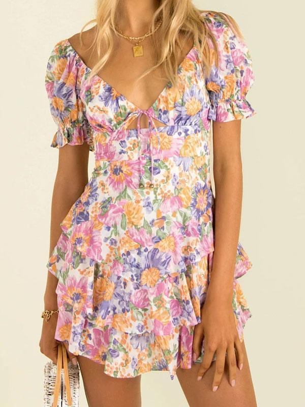 Fun and flirty! Our gorgeous Dress is made from a high-quality Cotton fabric with a vibrant floral print throughout! She features a cupped bust with tie detail, puff sleeves and a tiered ruffle skirt. Style her with strappy heels and a mini bag for your next night out!